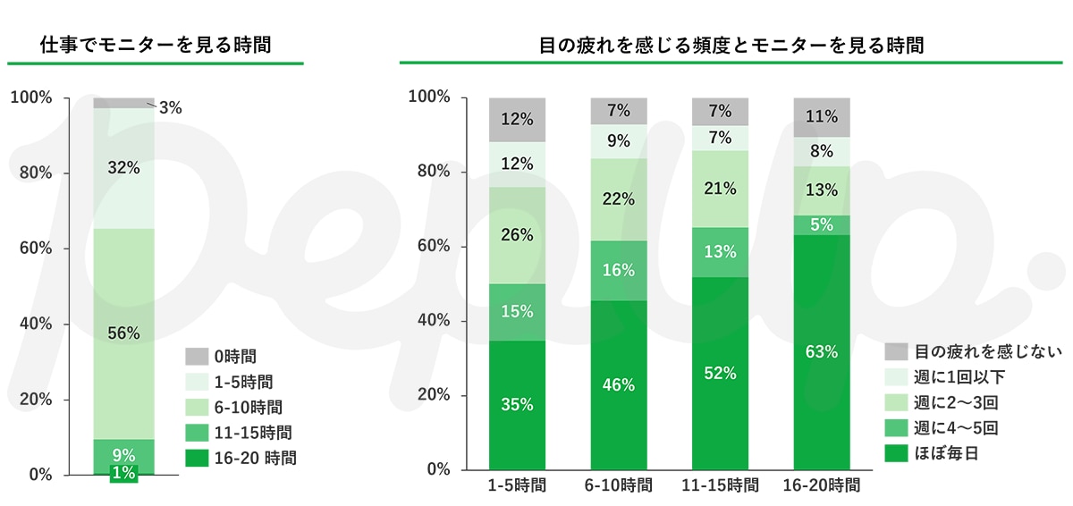 Q.仕事でモニターを見る時間および目の疲れを感じる頻度
