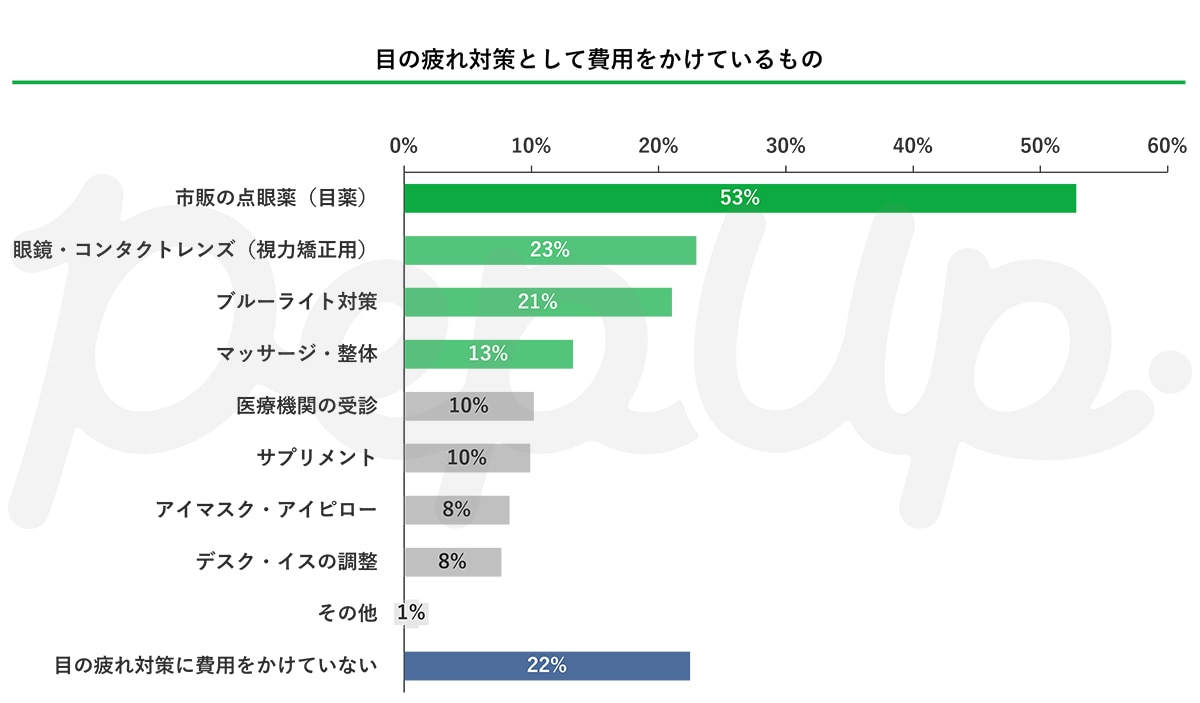 今回のアンケートでは、目の疲れの対策として費用をかけているものを伺いました。