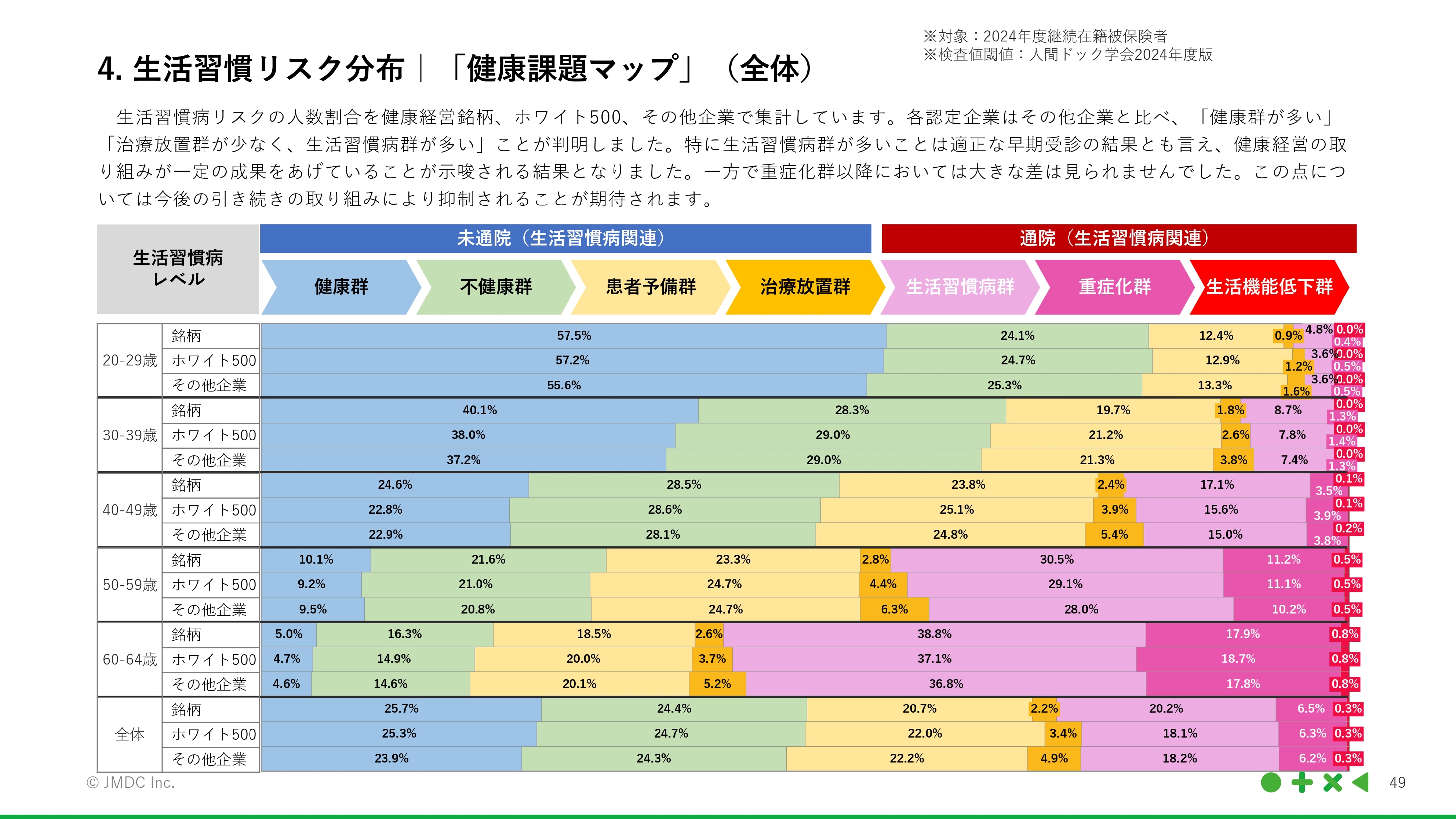 こうした分析をあらゆる健康診断の項目について開示したのが「2025年度版 JMDC健康経営KPIガイドブック」です。